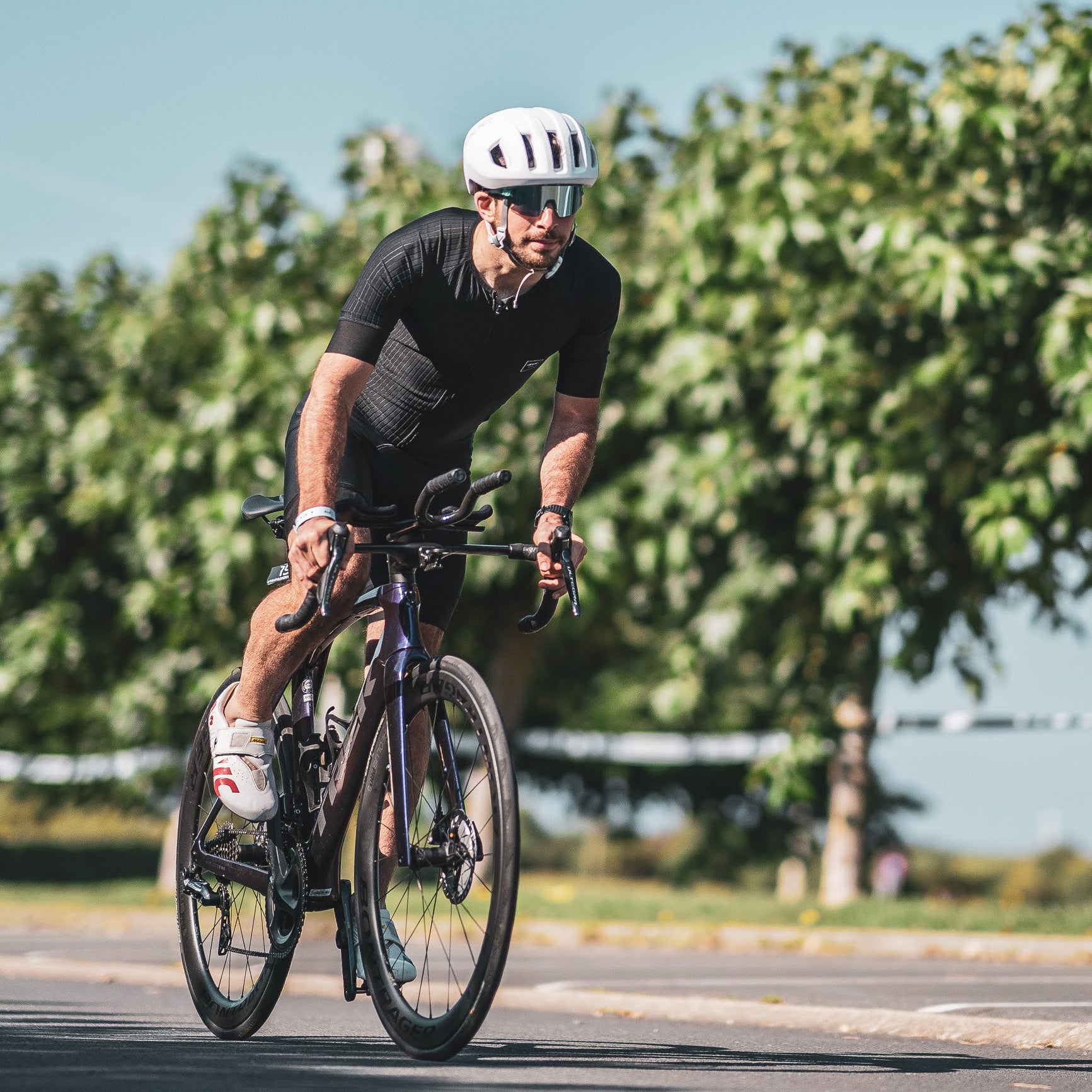 Thomas Laurent avec les Loubsol Fork 360 avant le départ d'un triathlon